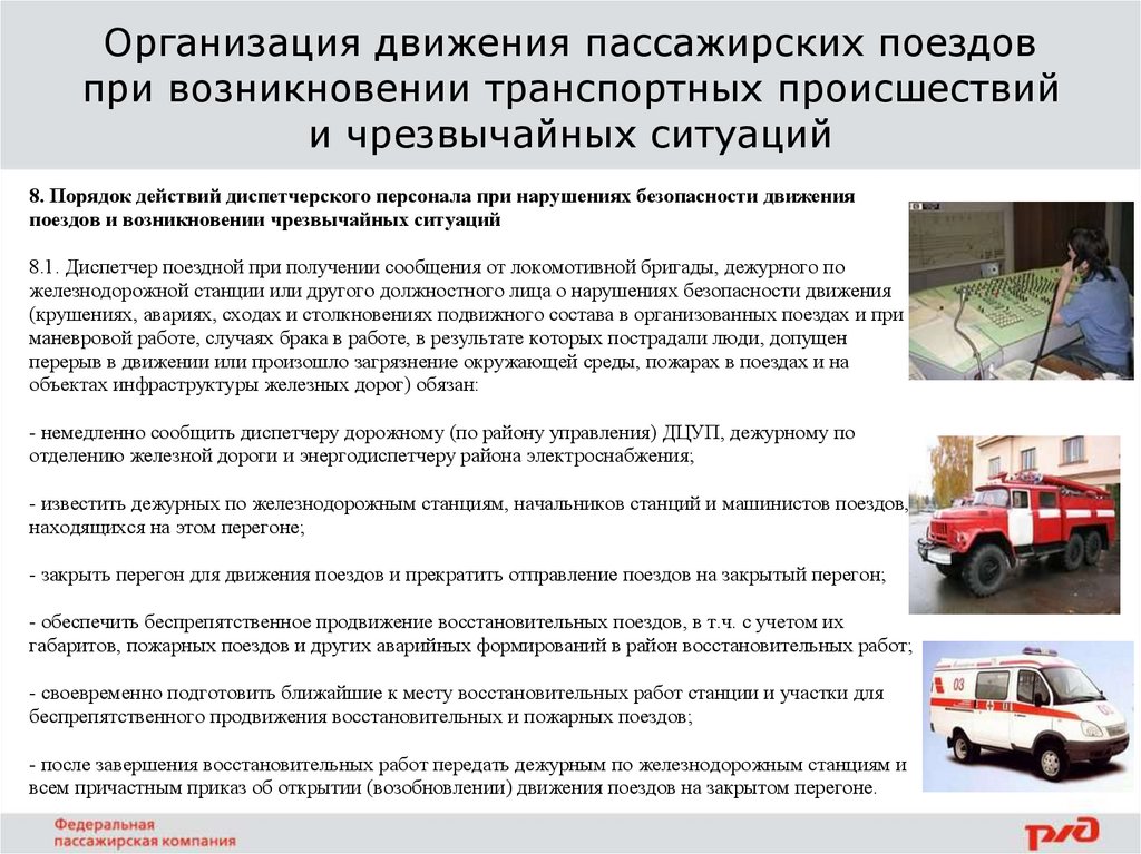 8. Порядок действий диспетчерского персонала при нарушениях безопасности движения