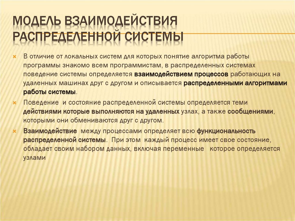 МОДЕЛЬ ВЗАИМОДЕЙСТВИЯРАСПРЕДЕЛЕННОЙ СИСТЕМЫ