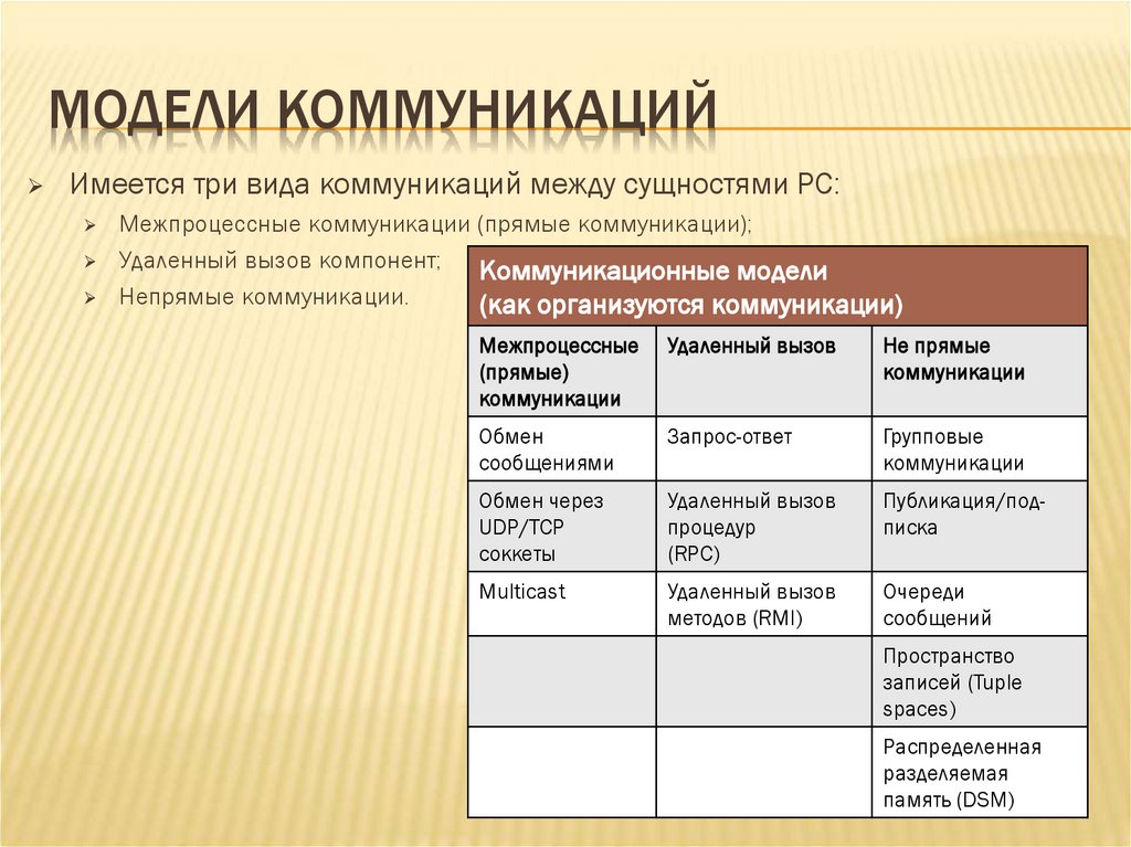 МОДЕЛИ КОММУНИКАЦИЙИмеется три вида коммуникаций между сущностями РС: