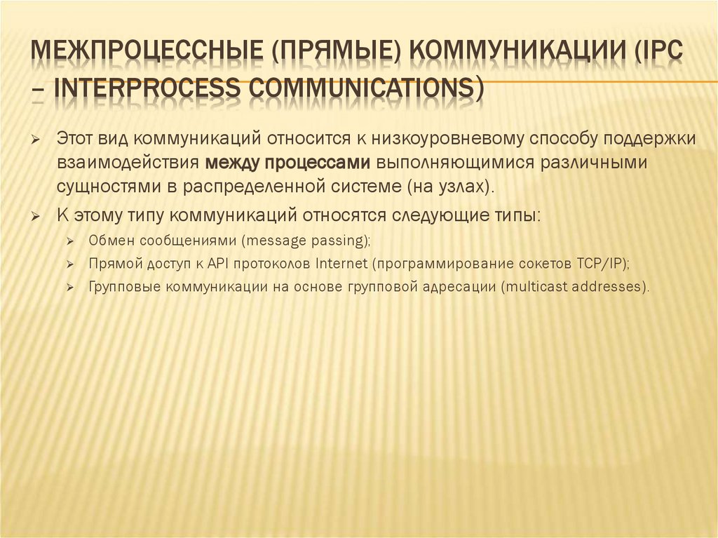 МЕЖПРОЦЕССНЫЕ (ПРЯМЫЕ) КОММУНИКАЦИИ (IPC– INTERPROCESS COMMUNICATIONS)