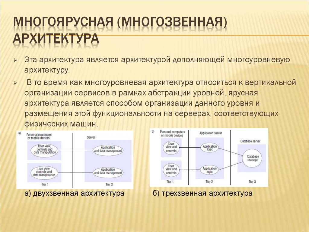 Архитектура многоуровневых клиент-серверных систем достаточно хорошо согласуется с