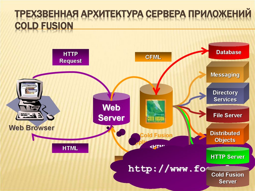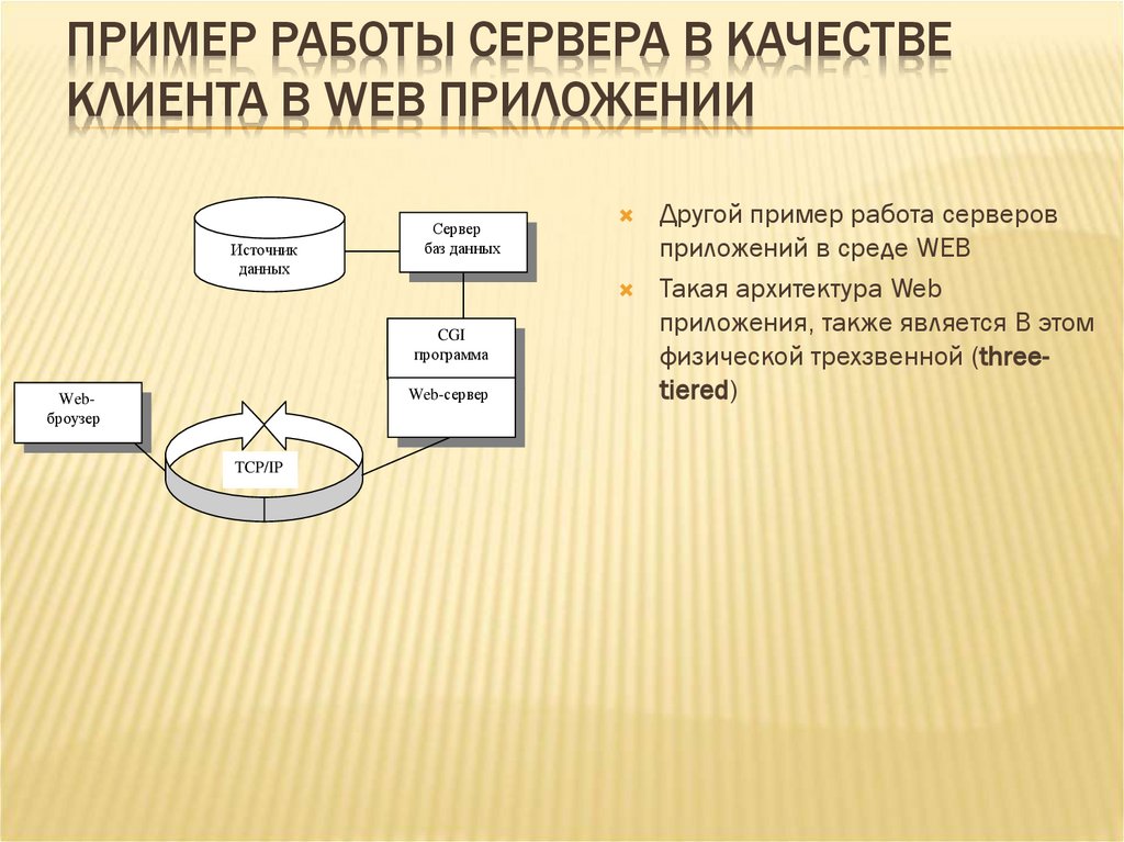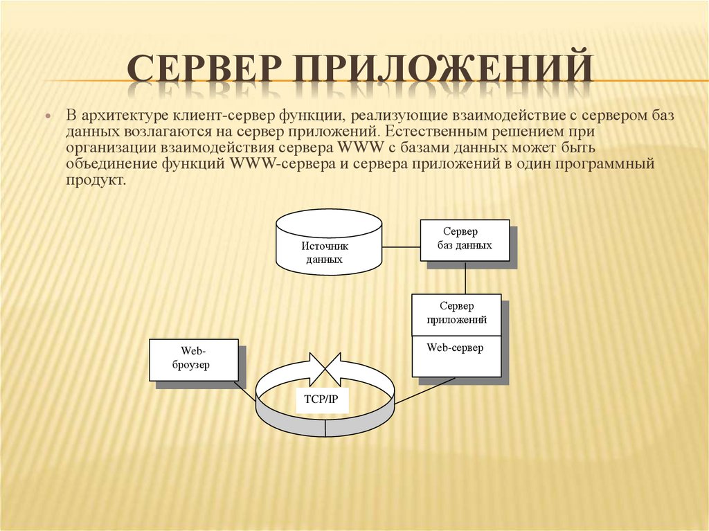сервер приложений дополняется Web-сервером и программами вызова процедур сервера.