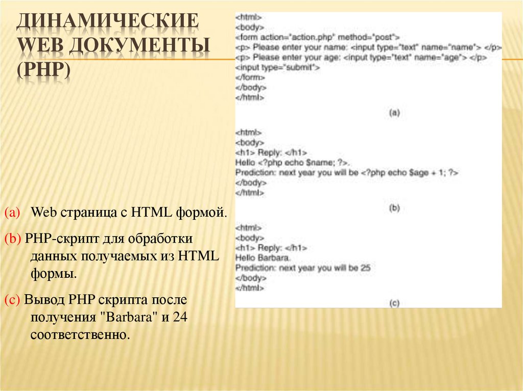 ДИНАМИЧЕСКИЕ WEB ДОКУМЕНТЫПример HTML страницы с встроенным кодом