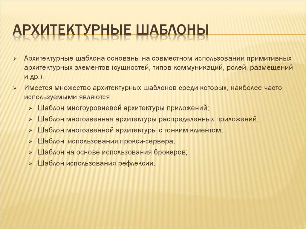 АРХИТЕКТУРНЫЕ ШАБЛОНЫАрхитектурные шаблона основаны на совместном использовании примитивных