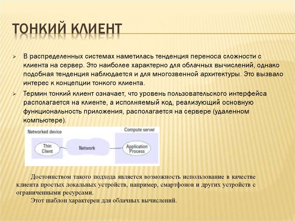 ТОНКИЙ КЛИЕНТВ распределенных системах наметилась тенденция переноса сложности с