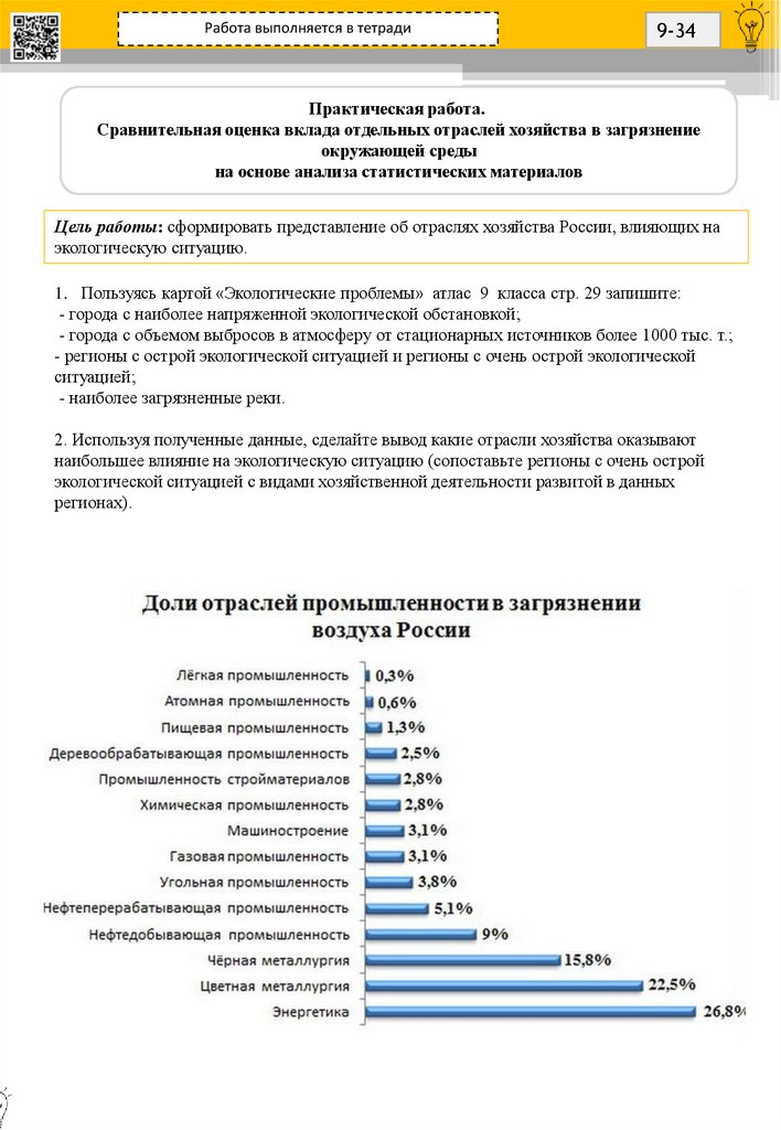Цель работы: сформировать представление об отраслях хозяйства России, влияющих на