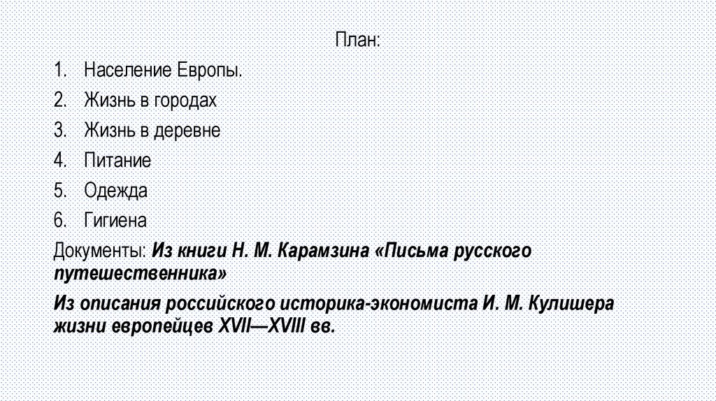 Из описания российского историка-экономиста И. М. Кулишера жизниевропейцев XVII—XVIII вв.