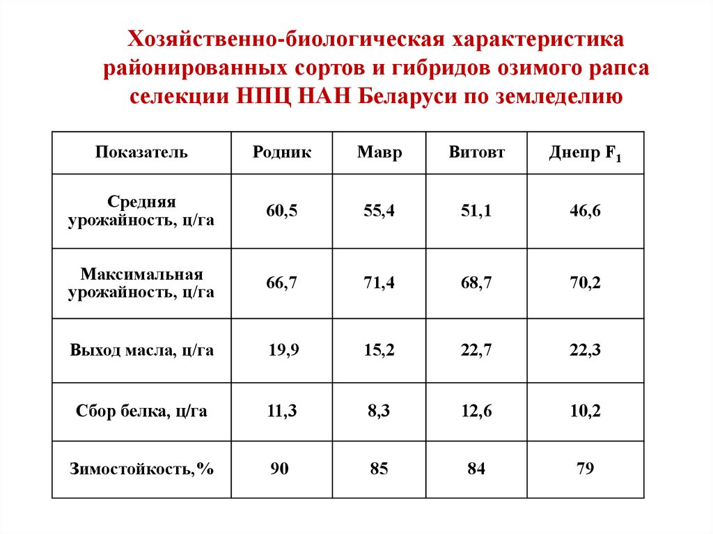 Хозяйственно-биологическая характеристикарайонированных сортов и гибридов озимого рапса