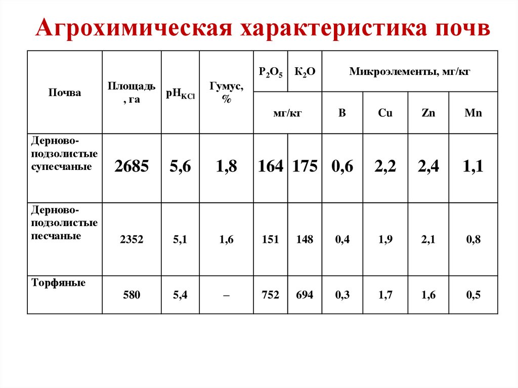Агрохимическая характеристика почвПочва