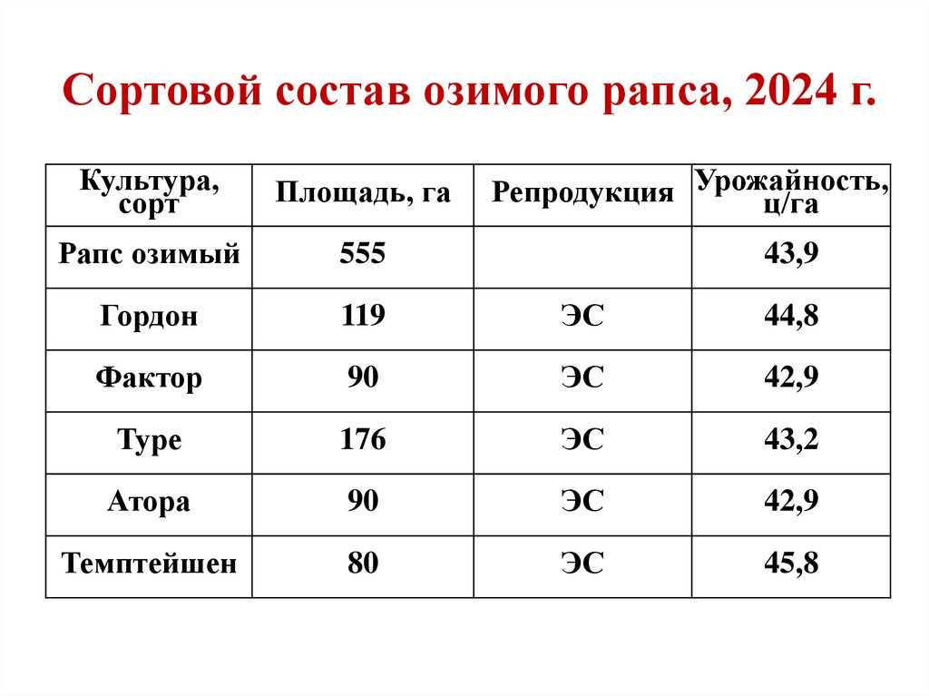 продуктивные показатели озимого рапса