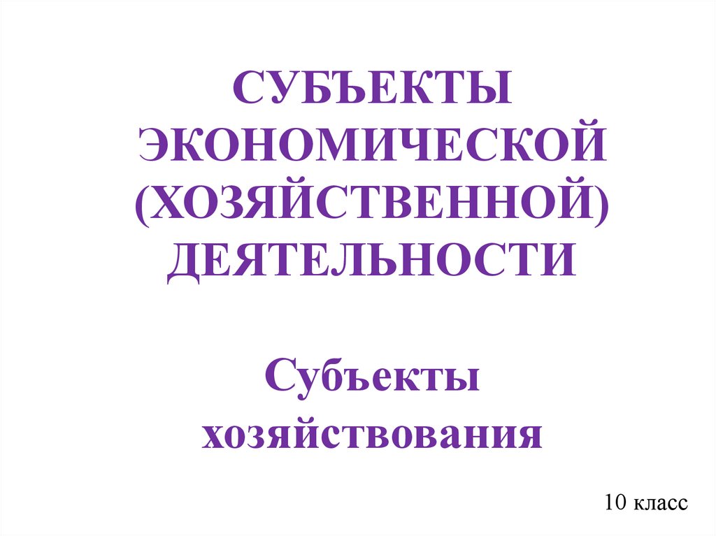 СУБЪЕКТЫЭКОНОМИЧЕСКОЙ