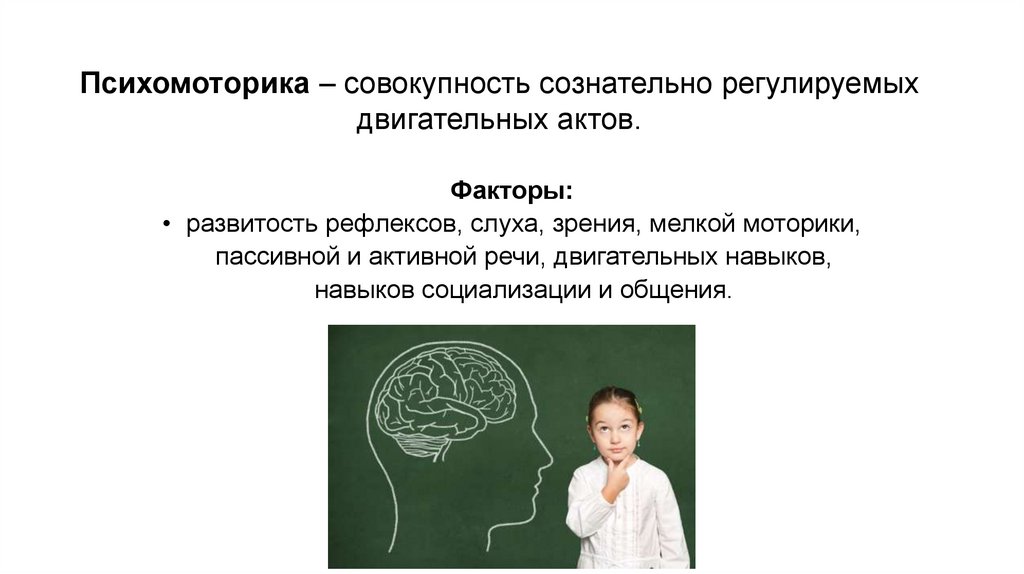 Психомоторика – совокупность сознательно регулируемыхдвигательных актов.