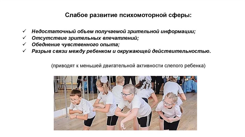 (приводят к меньшей двигательной активности слепого ребенка)
