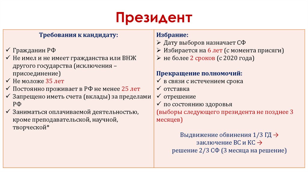 ПрезидентТребования к кандидату: