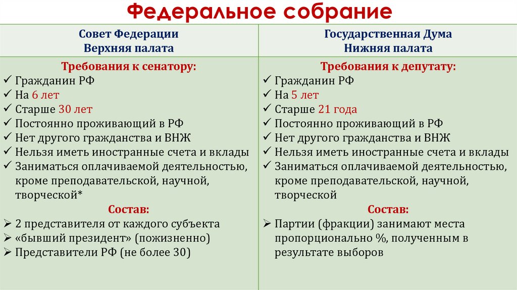 Требования к депутату: