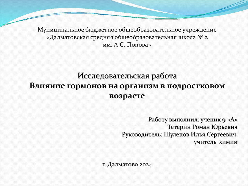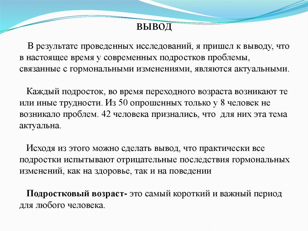 Влияние гормонов на организм в подростковом возрасте. Исследовательская работа