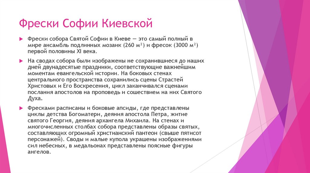 Фрески Софии КиевскойФрески собора Святой Софии в Киеве — это самый полный в