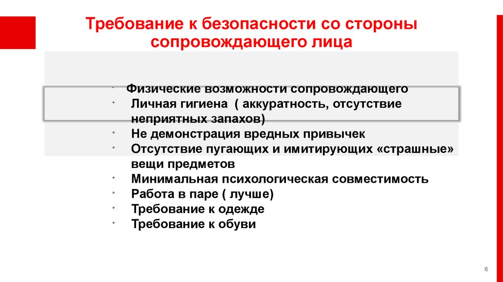 Требование к безопасности со стороны сопровождающего лица ( личная