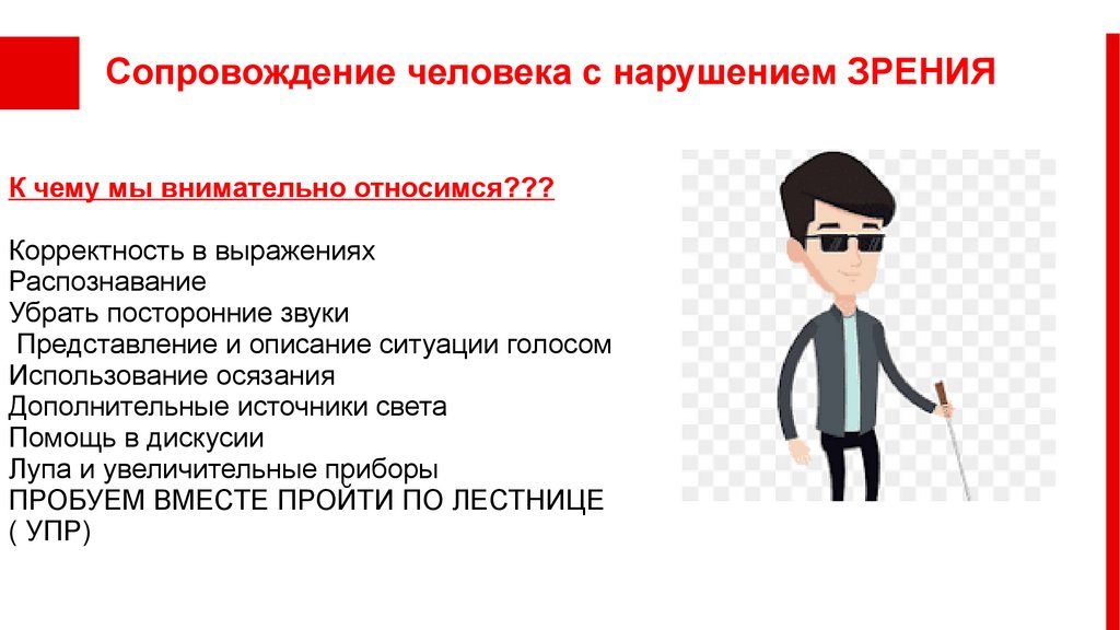 Сопровождение человека с нарушением ЗРЕНИЯК чему мы внимательно относимся???