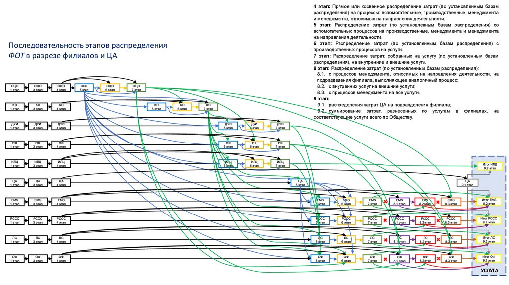 Последовательность этапов распределения ФОТ в разрезе филиалов и ЦА