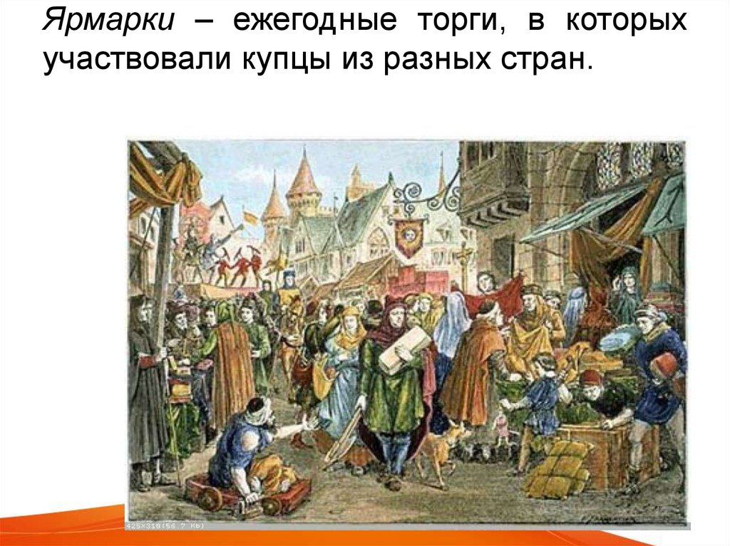 Ярмарки – ежегодные торги, в которыхучаствовали купцы из разных стран.
