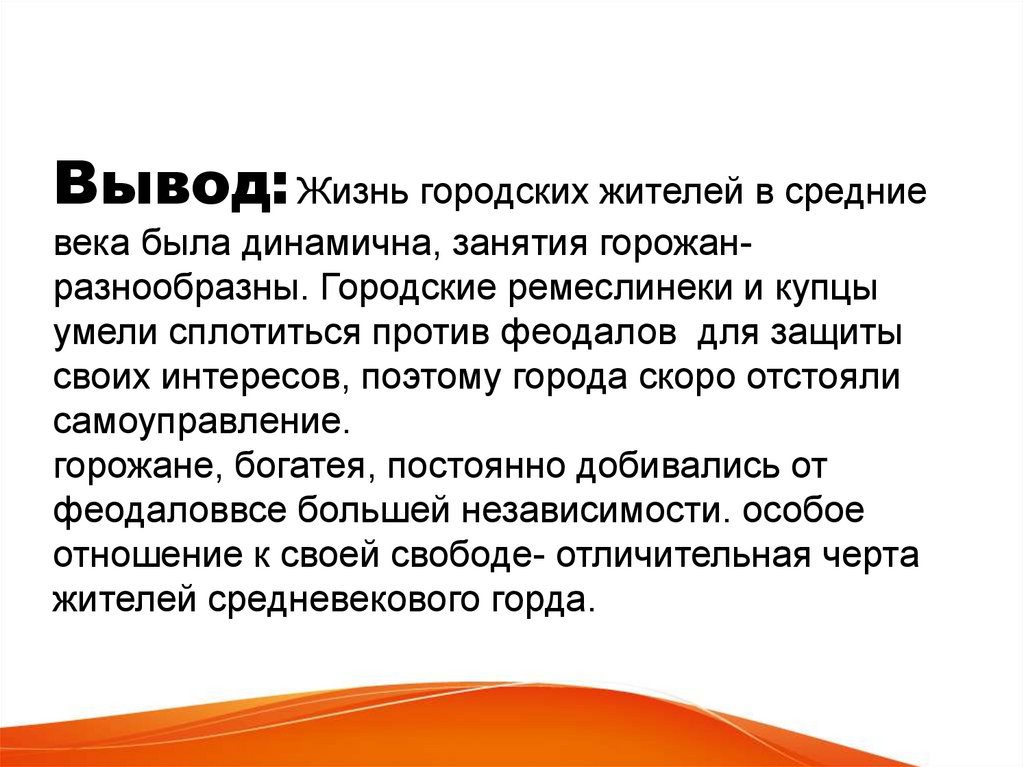 Вывод: Жизнь городских жителей в средниевека была динамична, занятия горожанразнообразны. Городские ремеслинеки и купцы
