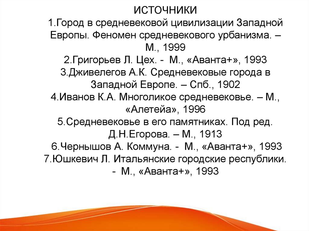 ИСТОЧНИКИ1.Город в средневековой цивилизации Западной