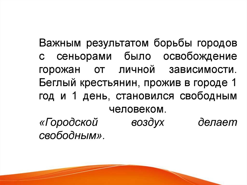 Некоторые города освобождались отвласти сеньора в результате длительных