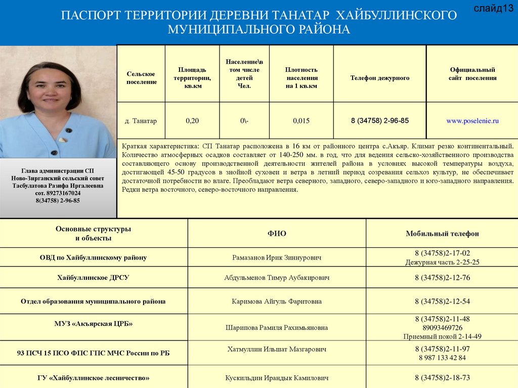 п. 2.ПАСПОРТ ТЕРРИТОРИИ МУНИЦИПАЛЬНОГО РАЙОНА ХАЙБУЛЛИНСКИЙ РАЙОН