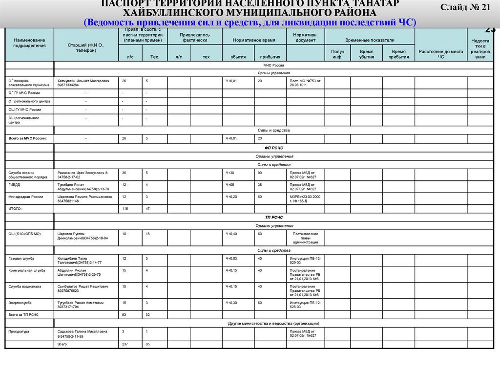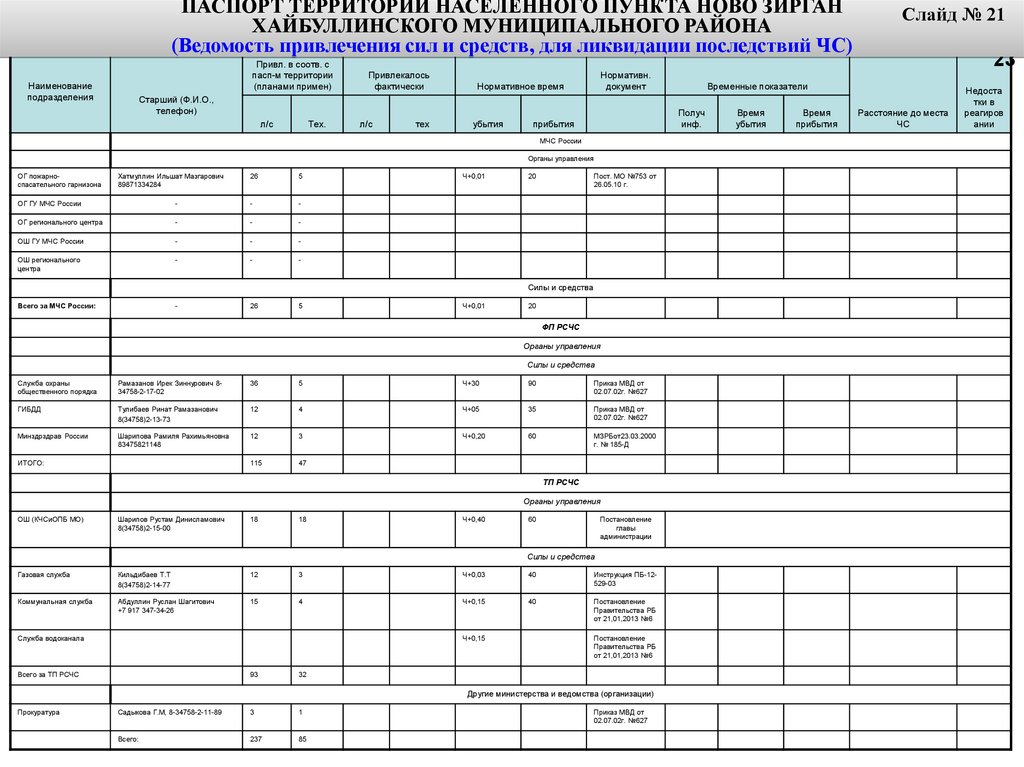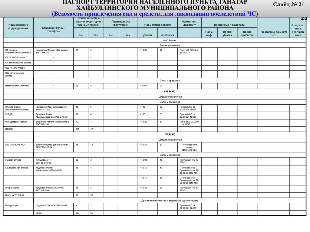 Информационно-справочные материалы по силам и средствам