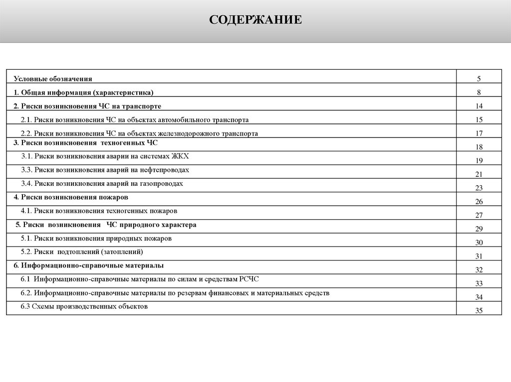 СОДЕРЖАНИЕУсловные обозначения