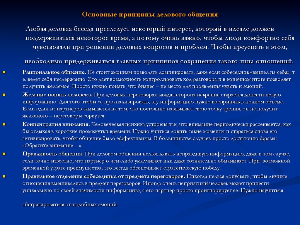 Желание понять человека. При деловых переговорах каждая сторона искренне старается донести некую