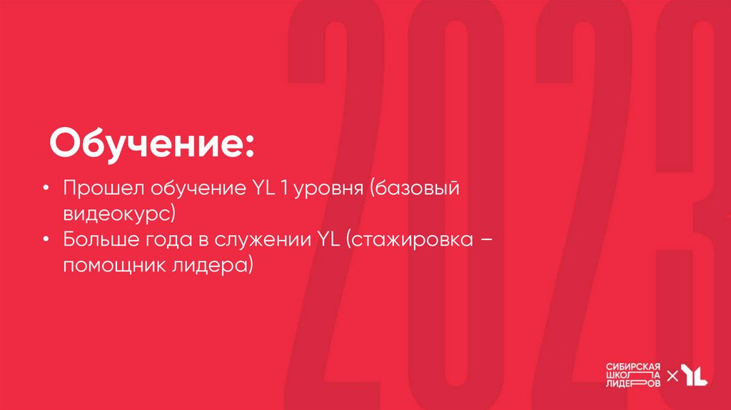 Обучение:• Прошел обучение YL 1 уровня (базовый