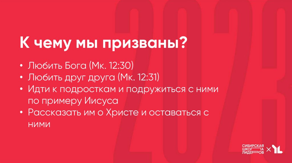 К чему мы призваны?• Любить Бога (Мк. 12:30)