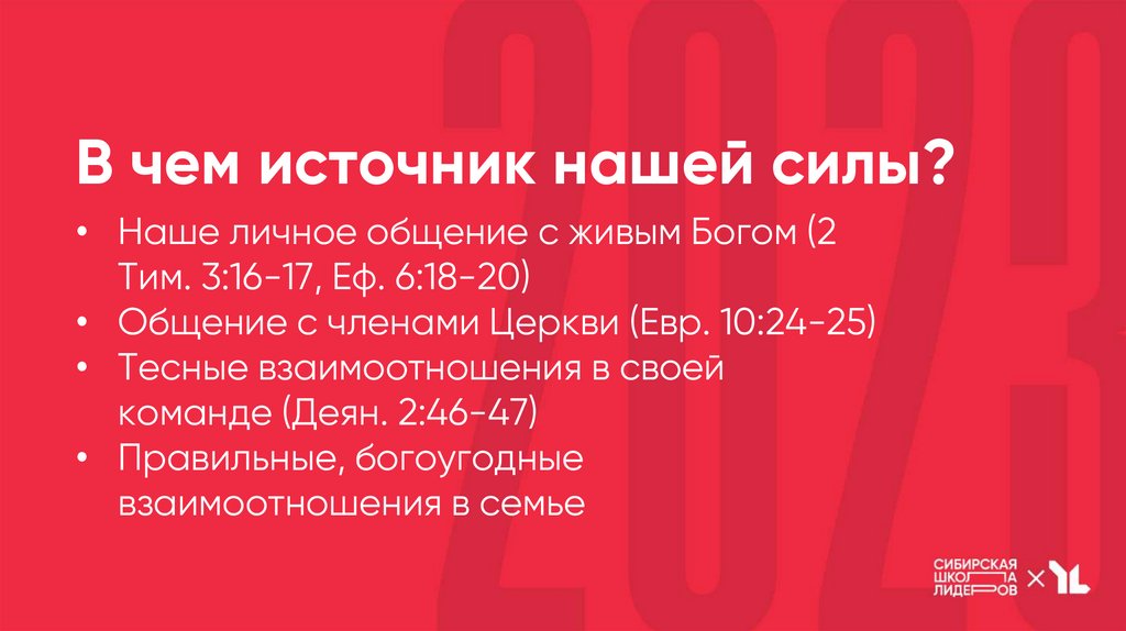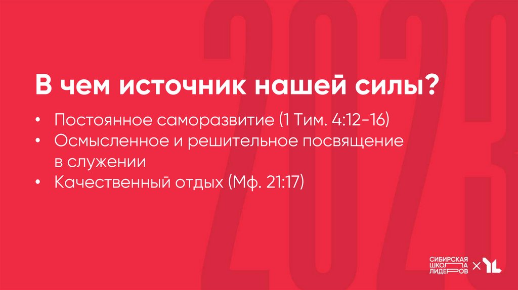 В чем источник нашей силы?• Постоянное саморазвитие (1 Тим. 4:12-16)
