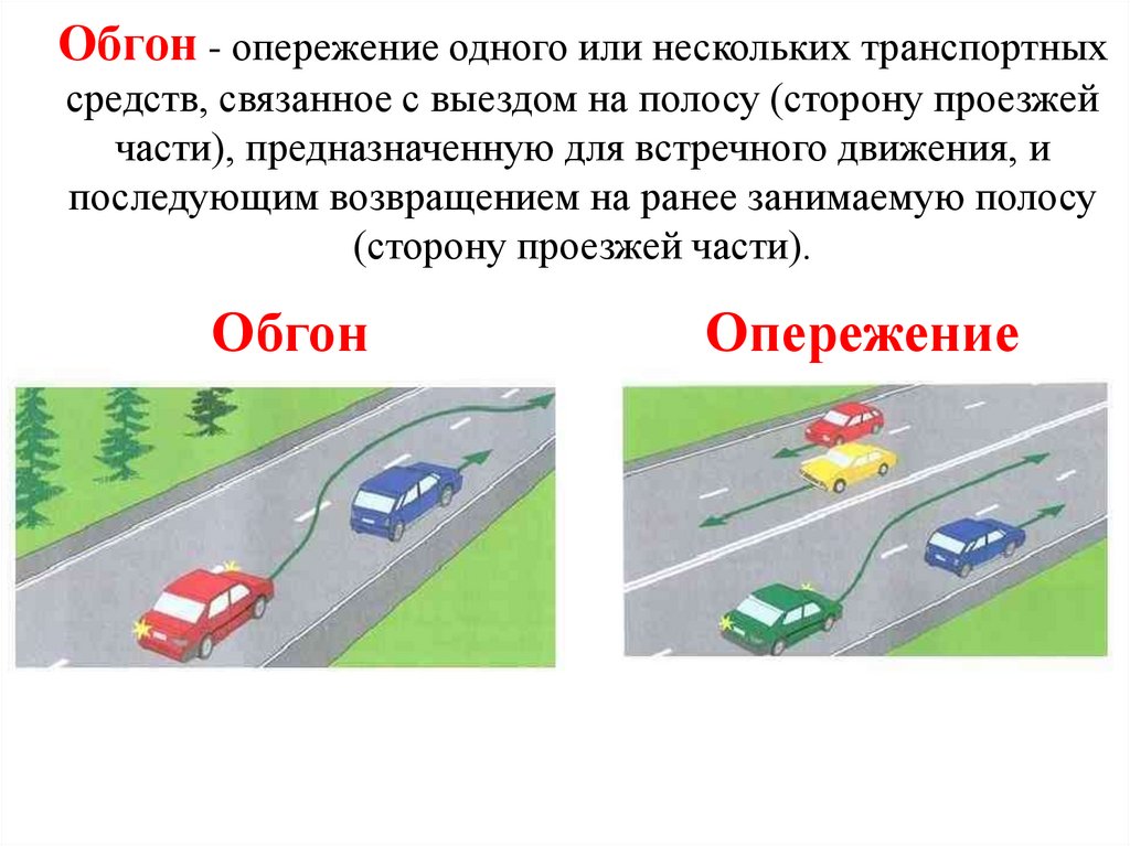 Обгон - опережение одного или нескольких транспортныхсредств, связанное с выездом на полосу (сторону проезжей