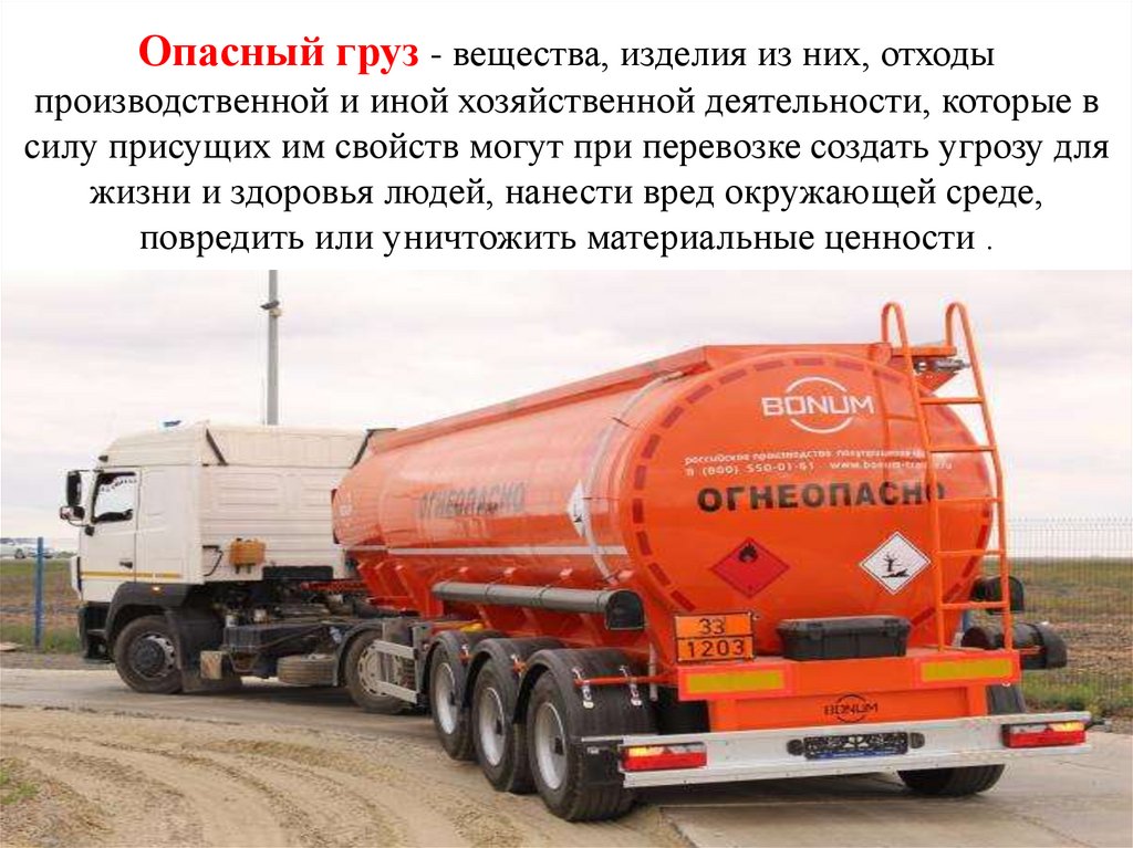 Опасный груз - вещества, изделия из них, отходыпроизводственной и иной хозяйственной деятельности, которые в