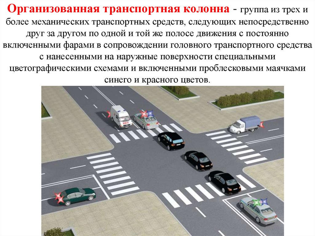 Организованная транспортная колонна - группа из трех иболее механических транспортных средств, следующих непосредственно