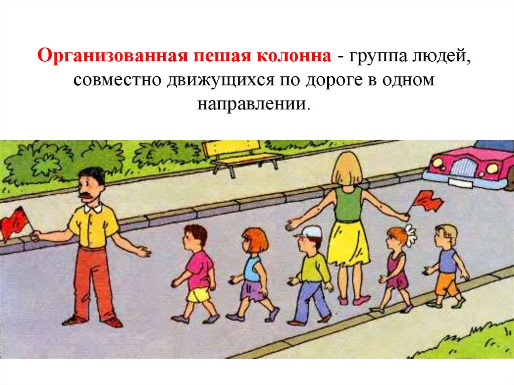 Организованная пешая колонна - группа людей,совместно движущихся по дороге в одном