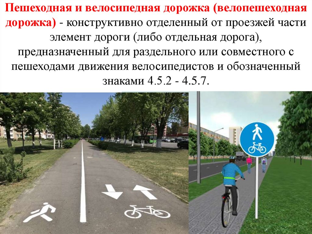 Пешеходная и велосипедная дорожка (велопешеходнаядорожка) - конструктивно отделенный от проезжей части