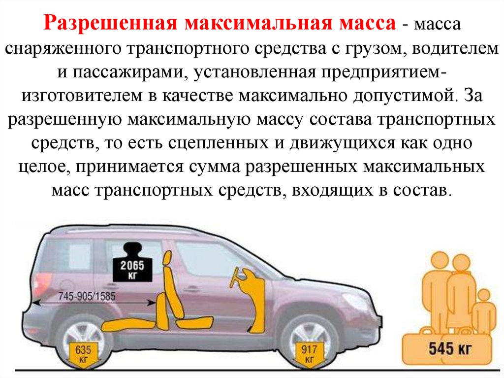 Разрешенная максимальная масса - массаснаряженного транспортного средства с грузом, водителем