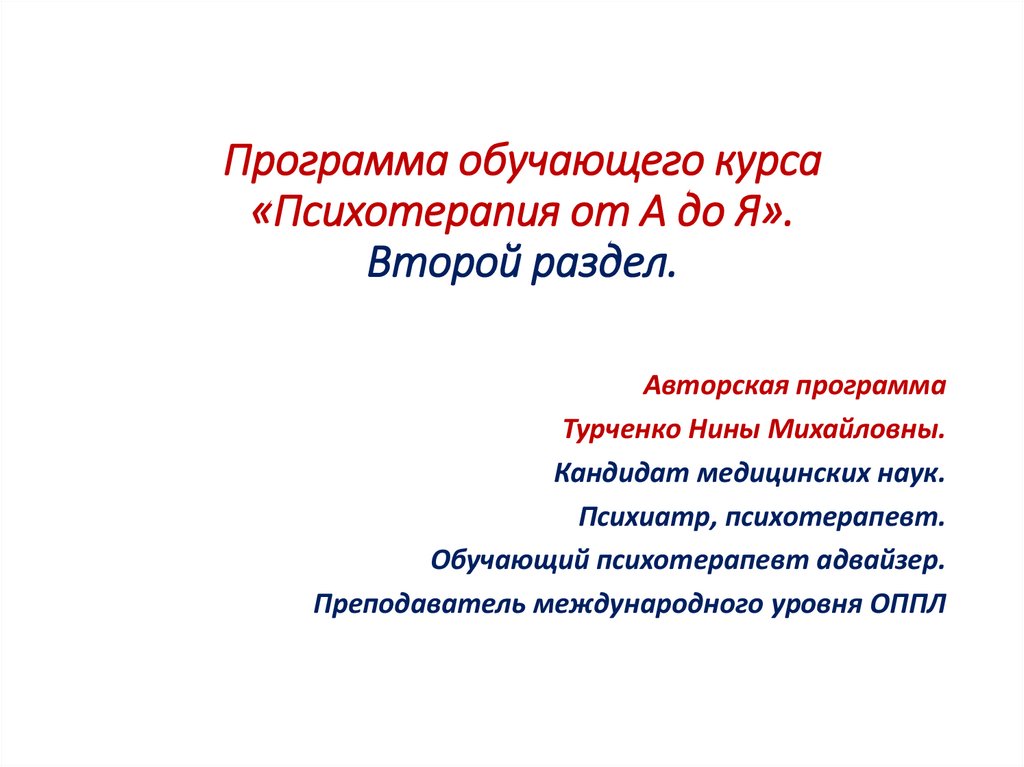 Программа обучающего курса «Психотерапия от А до Я». Второй раздел