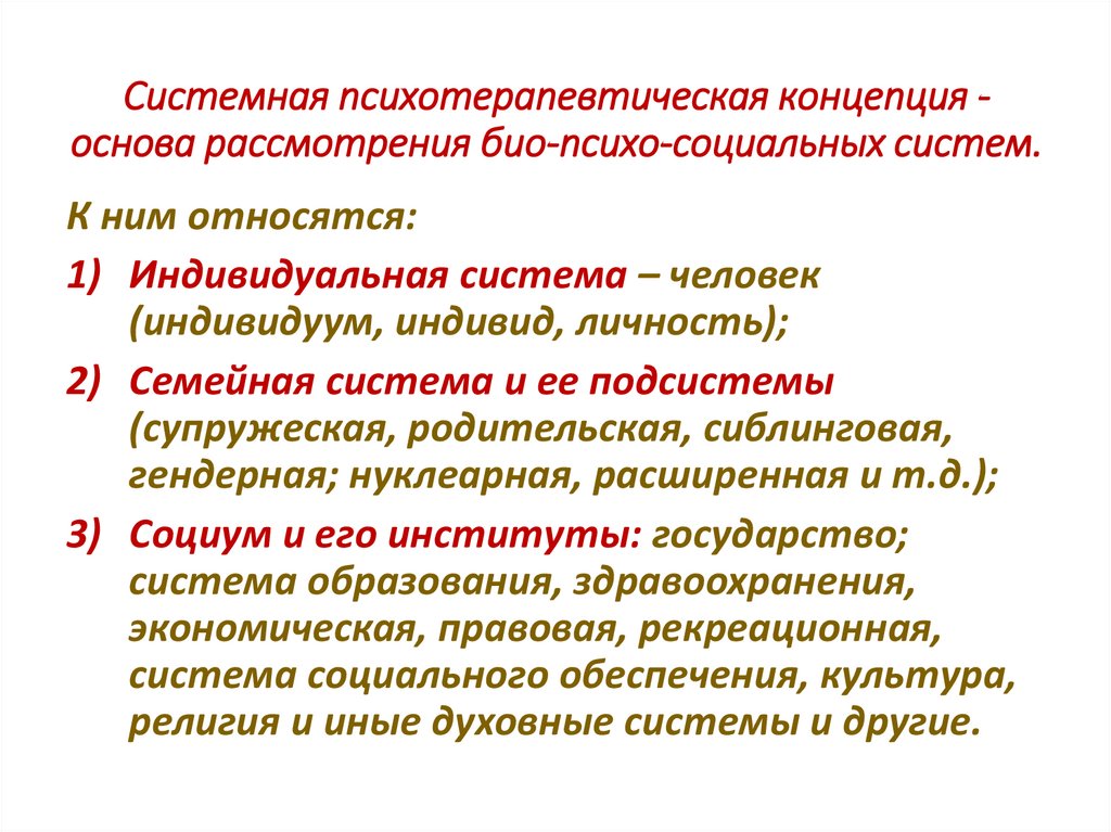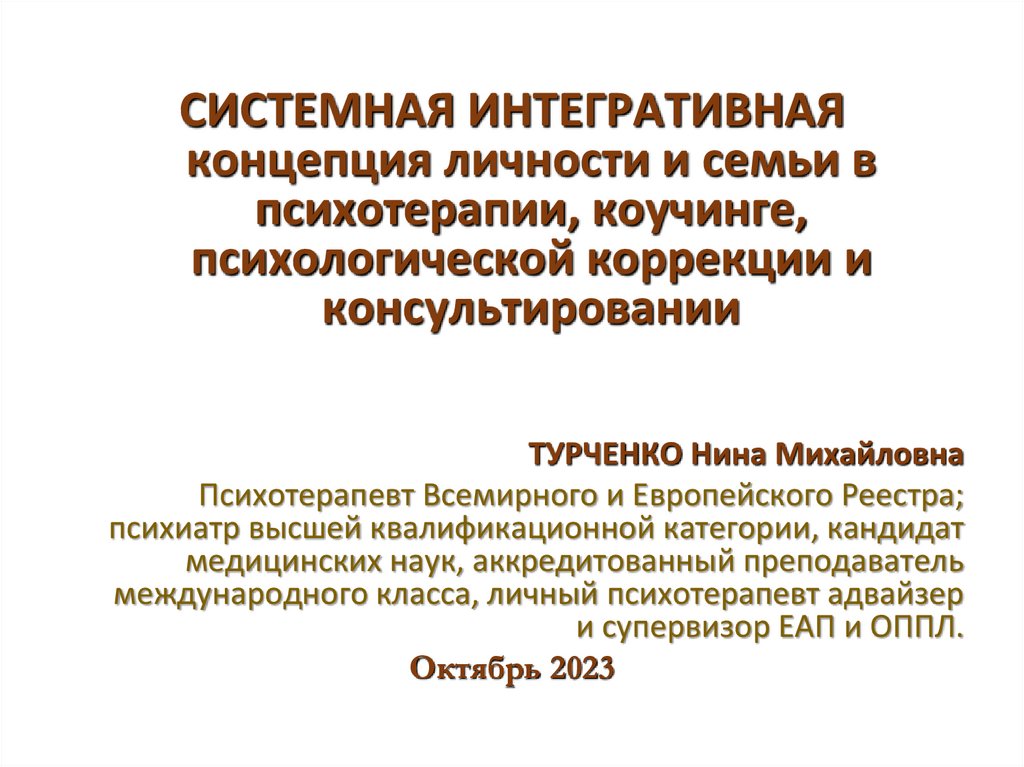 СИСТЕМНАЯ ИНТЕГРАТИВНАЯконцепция личности и семьи в