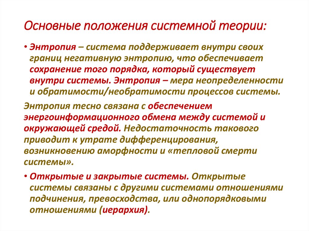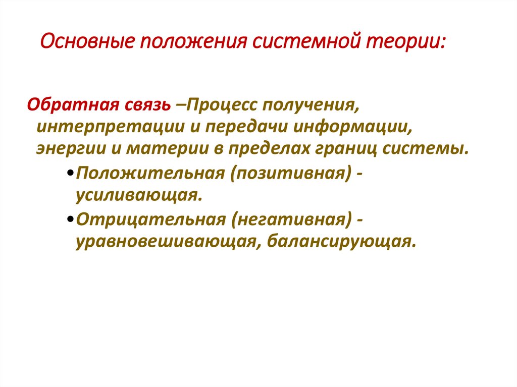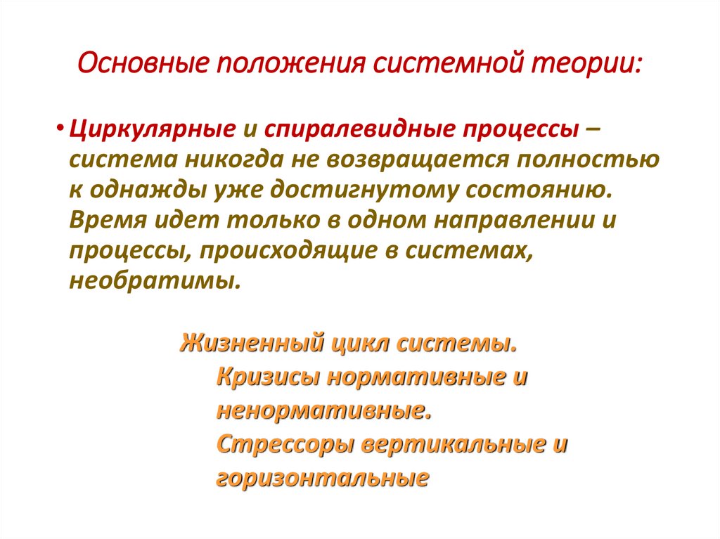 Основные положения системной теории:• Циркулярные и спиралевидные процессы –