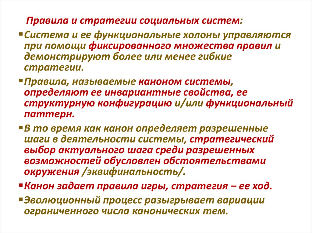 Правила и стратегии социальных систем:Система и ее функциональные холоны управляются