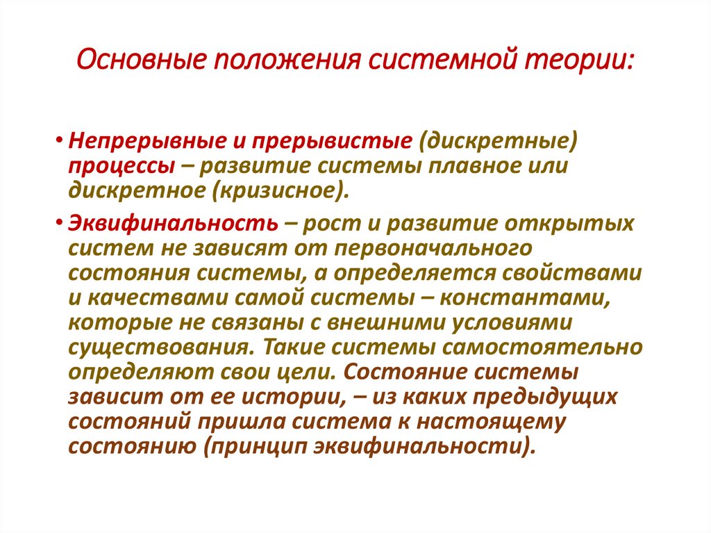 Основные положения системной теории:• Непрерывные и прерывистые (дискретные)