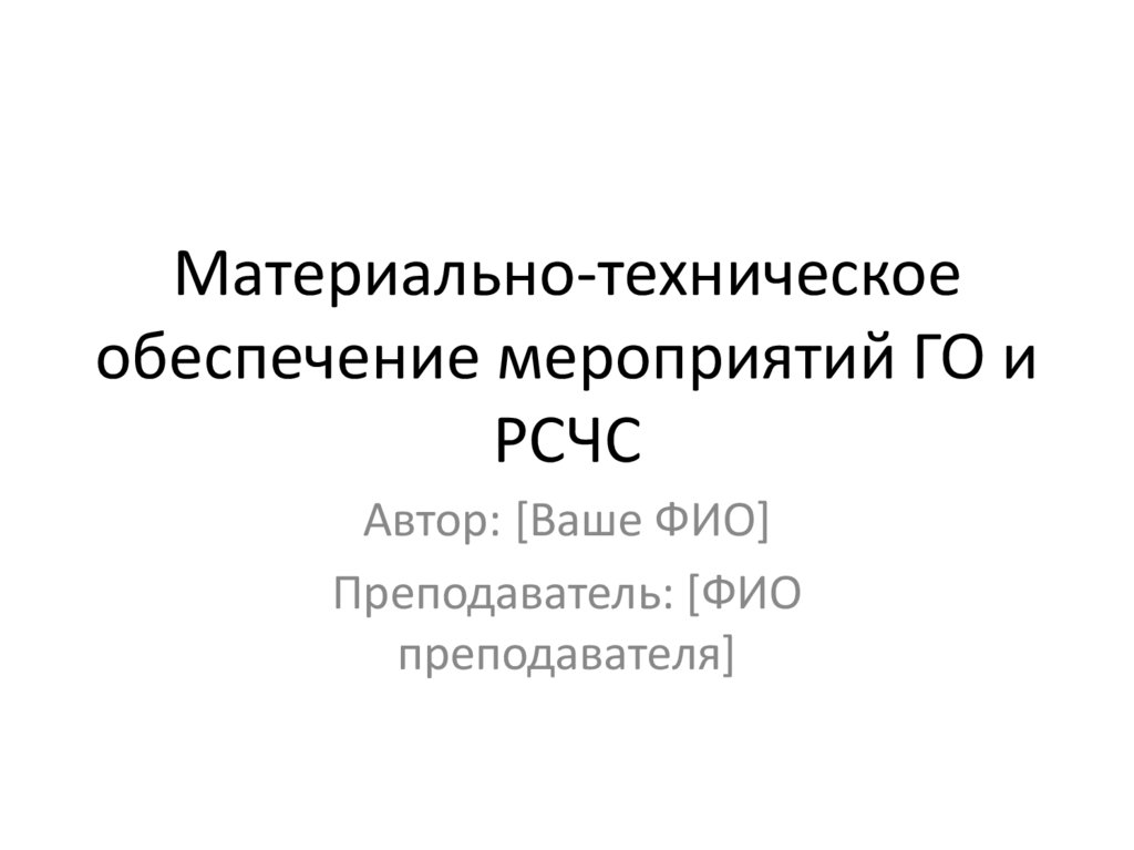 Материально-техническое обеспечение мероприятий ГО и РСЧС