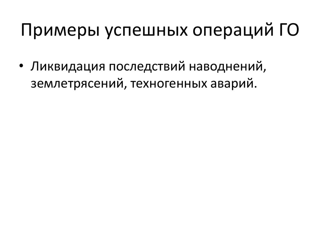 Примеры успешных операций ГО• Ликвидация последствий наводнений,