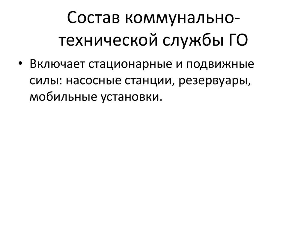 Состав коммунальнотехнической службы ГО• Включает стационарные и подвижные
