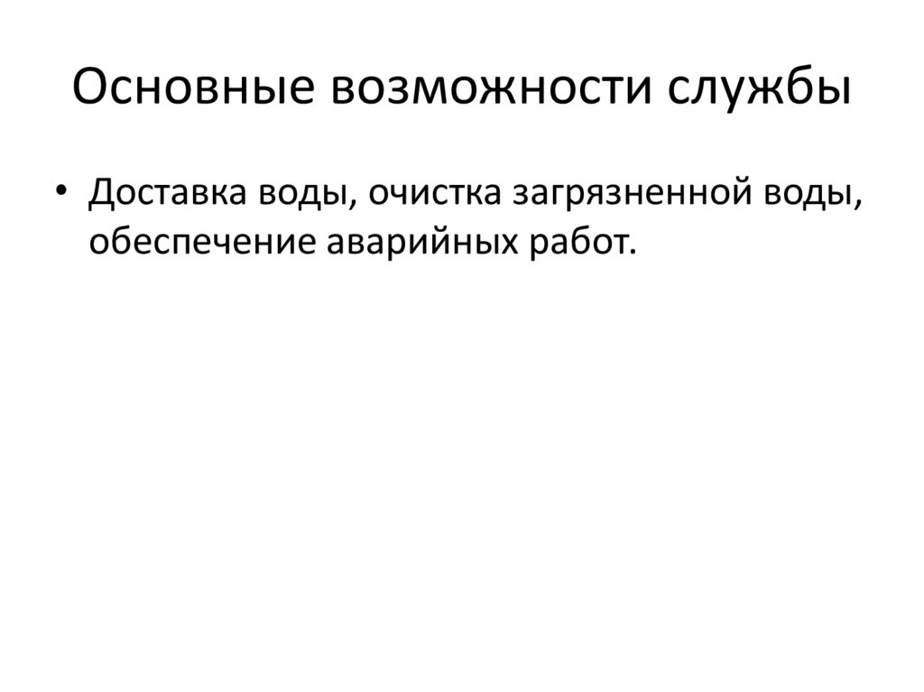Основные возможности службы• Доставка воды, очистка загрязненной воды,
